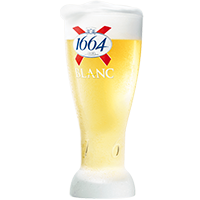 Lancée en 2006, la 1664 Blanc est LA bière blanche moderne – grâce, notamment, à son design futuriste. Avec sa bouteille bleue et son goût unique, la 1664 Blanc est un plaisir à la fois pour les yeux et pour la bouche. Elle incarne le « goût à la française » dans l’univers des bières blanches. Authentique et facile à boire avec son corps fruité et ses subtils arômes d’agrumes, de citron et de coriandre. Une bière française pour une cuisine légère et méditerranéenne comme les fruits de mer ou les viandes grillées.